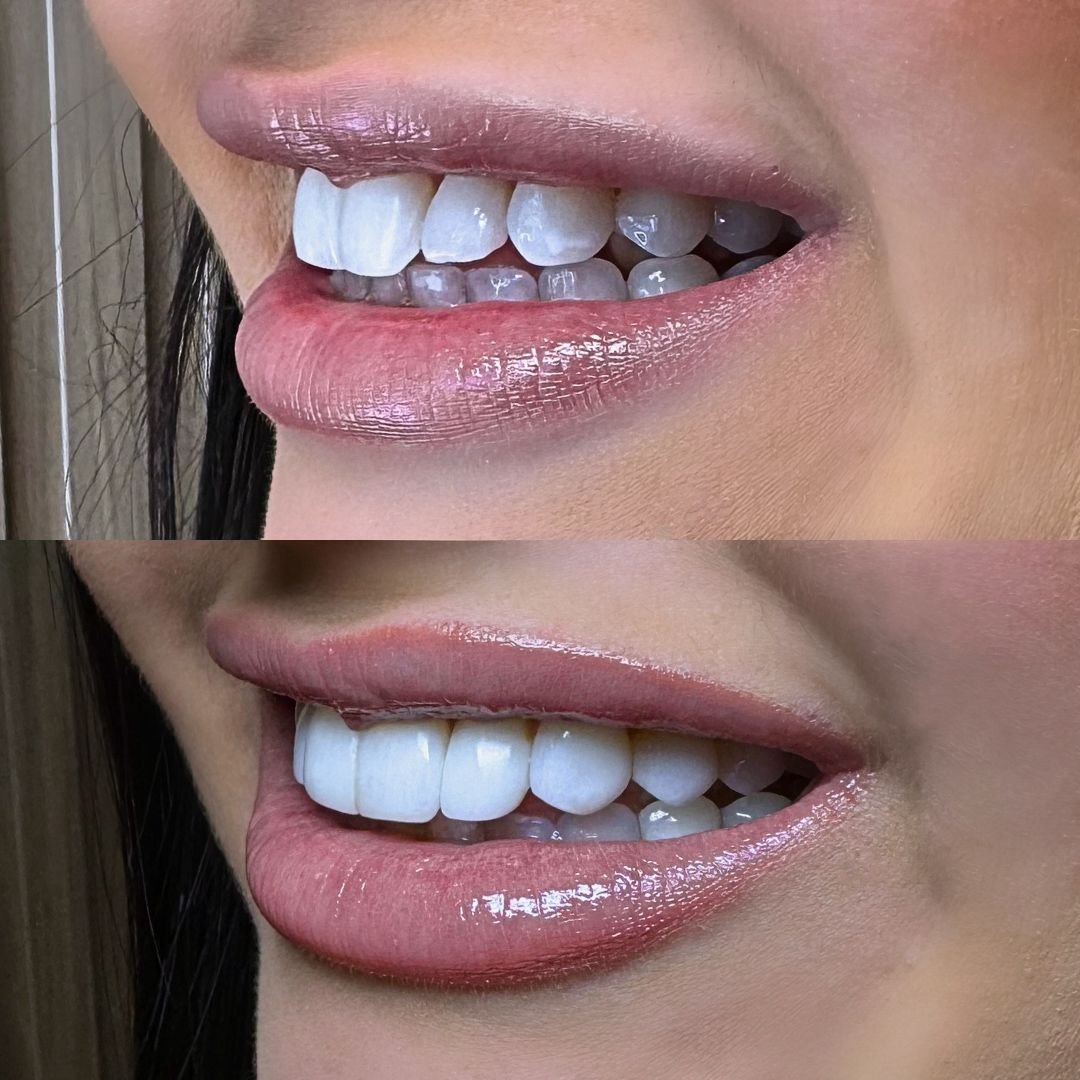 Transformação do sorriso com lentes em resina, planejadas de forma personalizada para alcançar naturalidade, harmonia estética e resultados delicados.