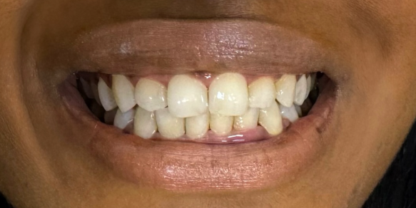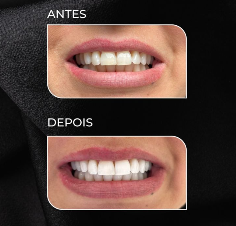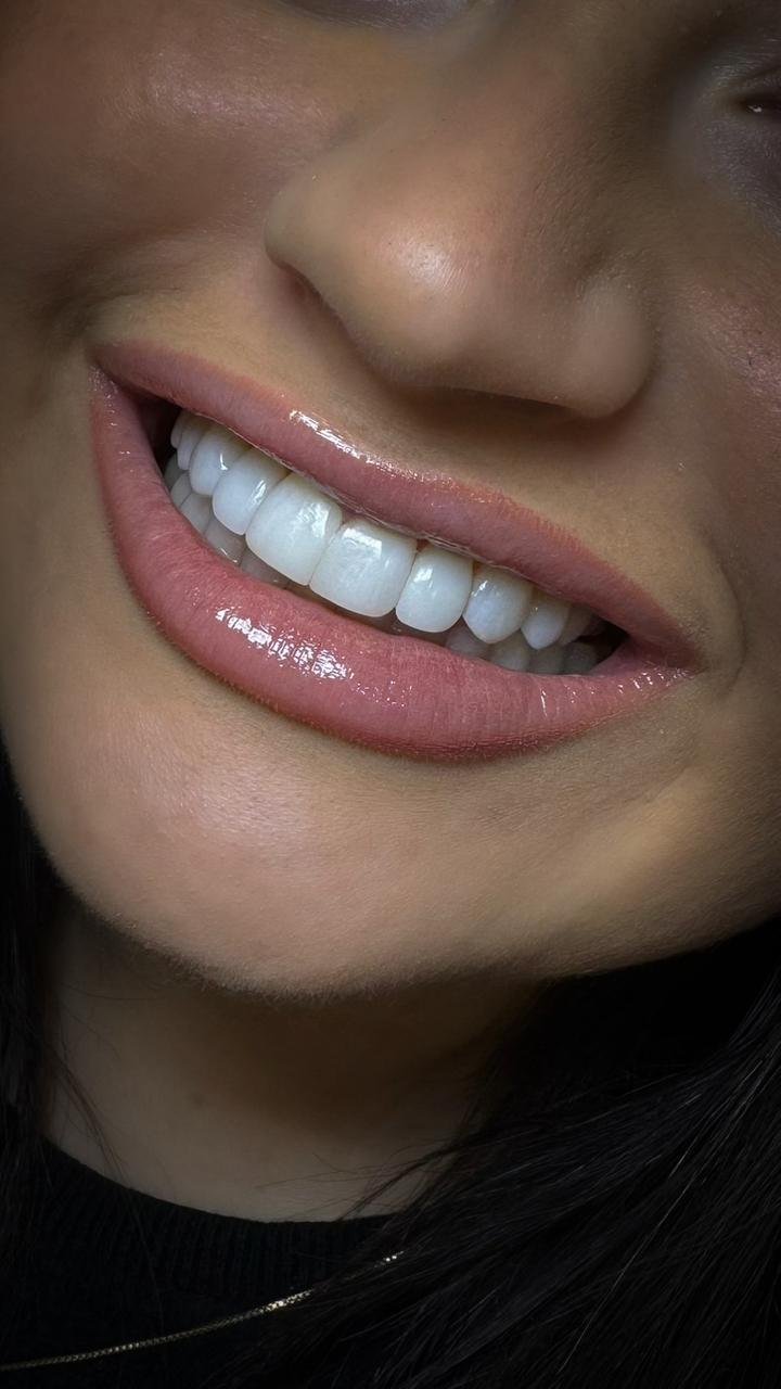 Transformação do sorriso com lentes em resina, planejadas de forma personalizada para alcançar naturalidade, harmonia estética e resultados delicados.